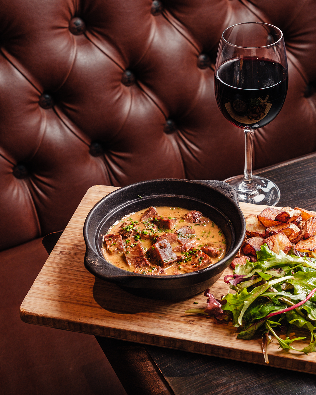 Le tout servi avec des pommes de terre rôties et du mesclun.